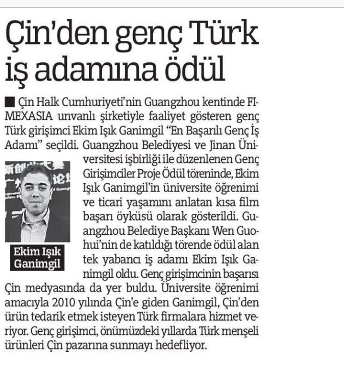 Çin serüveni, Jinan Üniversitesi Uluslararası Ekonomi ve Ticraret Bölümünde öğrenim ile başladı. 2008 yılından beri, Türkiye Ve Çin Halk Cumhuriyeti arasında sağlıklı, verimli ticari ilişkilerin güvencesi olmuştur.